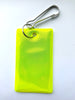 Yellow rectangular soft safety reflector complete with attached metal ring and metal clip.
